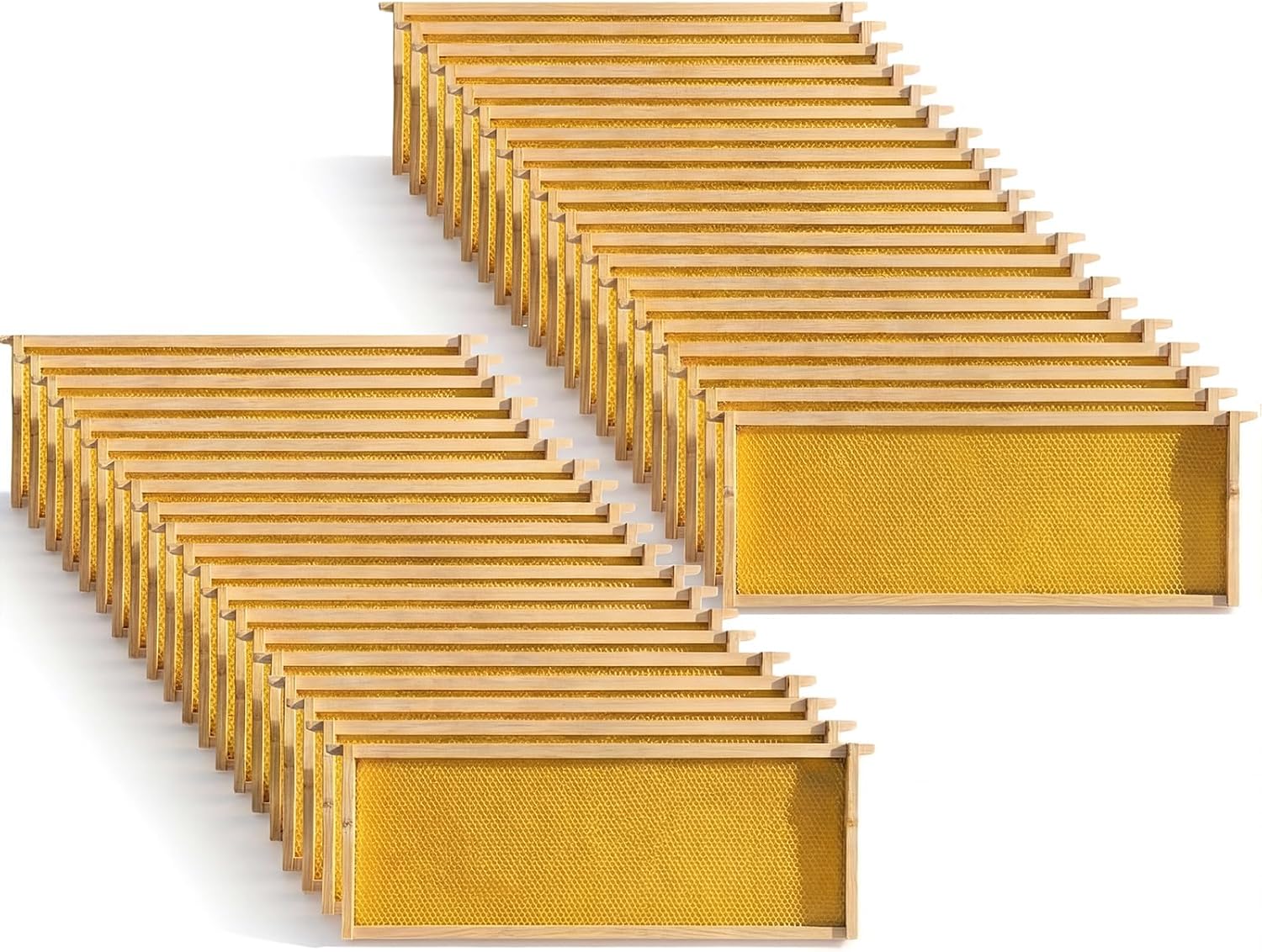 Features: Durable Construction: High quality wooden frames are assembled to withstand rough handling without reinforcement. The base is made of high-quality materials that won't break when extracting honey Specifications: Material: Cedar wood Color: Black Size: 19 inches x 17.6 inches x 6.3 inches Package includes: 40 × Honey Bee Frames