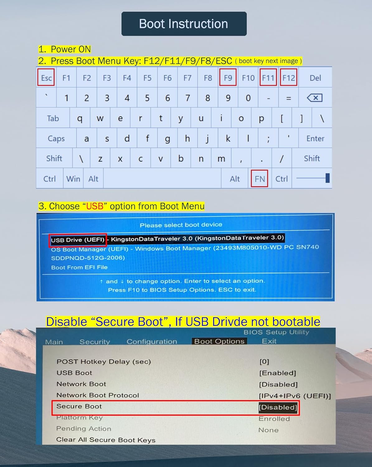 This 64GB Bootable USB 3.2 drive is specially designed to install Windows 11/10/8.1/7 (64bit Pro/Home/Education editions) on compatible laptops and desktop computers. It provides a convenient, all-in-one solution for setting up a new system, reinstalling Windows, or troubleshooting computer issues. The drive includes essential tools such as network drivers (WiFi & LAN), password recovery utilities, disk partitioning and backup tools, data recovery, and hardware diagnostics, helping you maintain and protect your system.