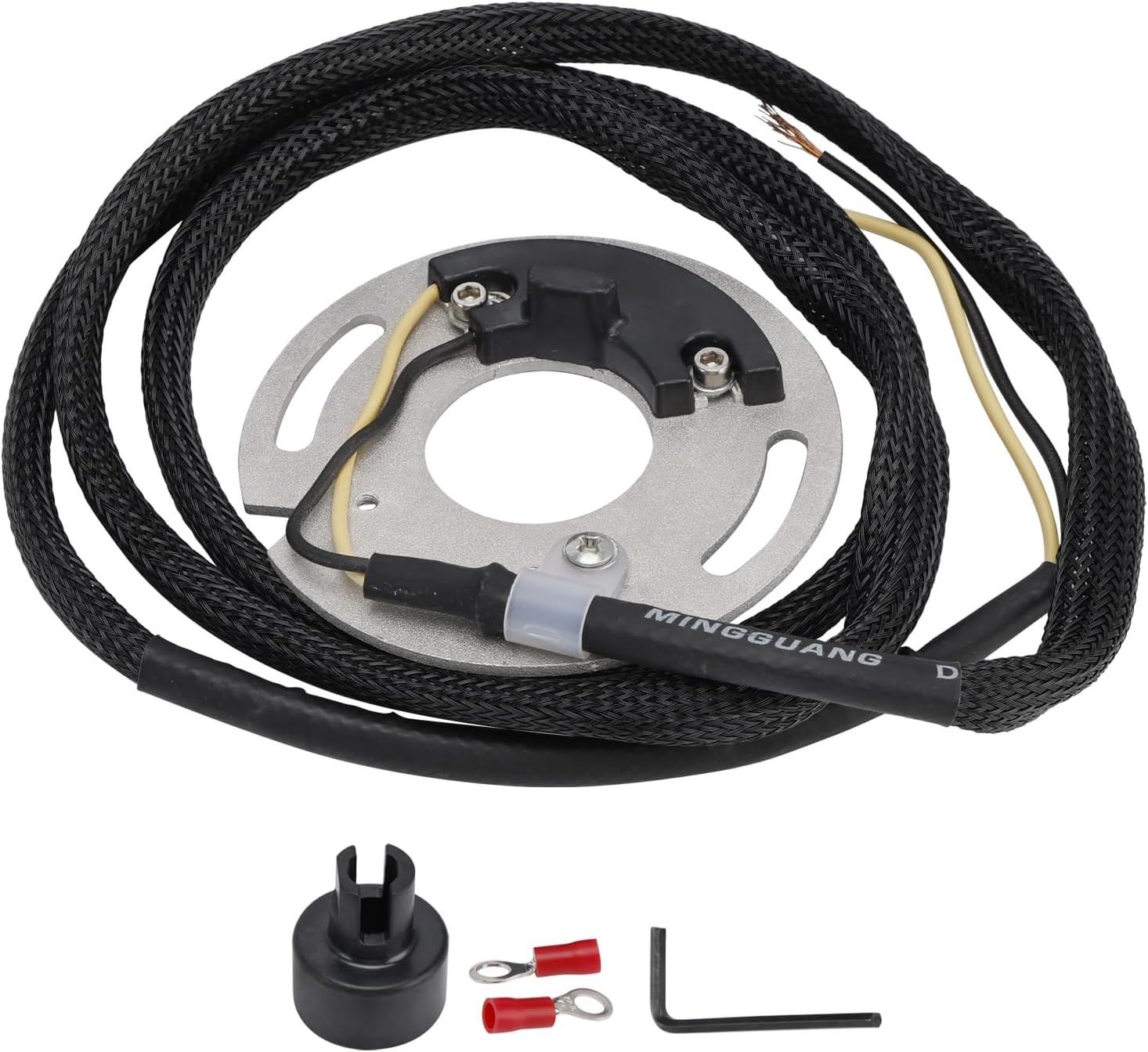 Replacement Part Number:21-7561133-3001Fits Model/Year: For Bad Boy FXSTSB 1995-1997For Disc Glide FXRDG 1983-1984For Dyna Convertible FXDS-Conv 1999For Dyna Low Rider FXDL 1993-1999For Dyna Super Glide FXD 1995-1999For Dyna Super Glide Sport FXDX 1999For Dyna Wide Glide FXDWG 1993-1999For Dyna Convertible FXDS-Conv 1995-1998For Dyna Low Rider Custom FXLR 1993-1994For Dyna Low Rider Convertible FXRS-Conv 1993For Dyna Low Rider Sport FXRS-SP 1993For Electra Glide Classic EFI FLHTCI 1996-1999For Electra Glide FLHT 1995-1999For Electra Glide Ultra Classic EFI FLHTCUI 1995-1999For Low Rider Custom FXLR 1987-1992For Low Rider Sport FXRS-SP 1986-1992For Low Rider Chrome FXRC 1987For Road Glide EFI FLTRI 1998-1999For Road Glide FLTR 1998- 1999For Road King FLHR 1994-1999For Road KingClassic EFI FLHRCI 1998-1999For Road King EFI FLHRI 1996-1997For Roadster XLS 1978-1985For Softail Standard FXST 1999For Softail Custom FXSTC 1986-1999For Softail FXST 1984-1990For Softail Springer FXSTS 1988-1999For Sportster 883 Deluxe XLH883 1986-1990For Tour Glide Ultra Classic FLTCU 1992-1993For Tour Glide Classic FLTC 1983-1991For Tour Glide Ultra Classic FLTCU 1989-1991For Tour Glide FLT 1980-1983For Tour Glide Classic FLTC 1981-1982For XR1000 1983-1985Package Included:1x Ignition sensor plate2x Ring terminals1x Plug end