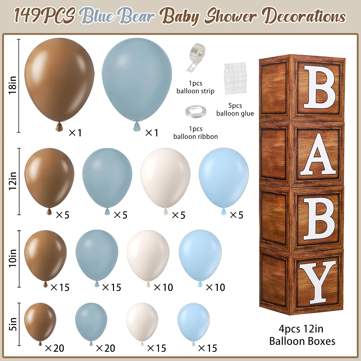 | Included Components | Balloon Arch, baby boxes |