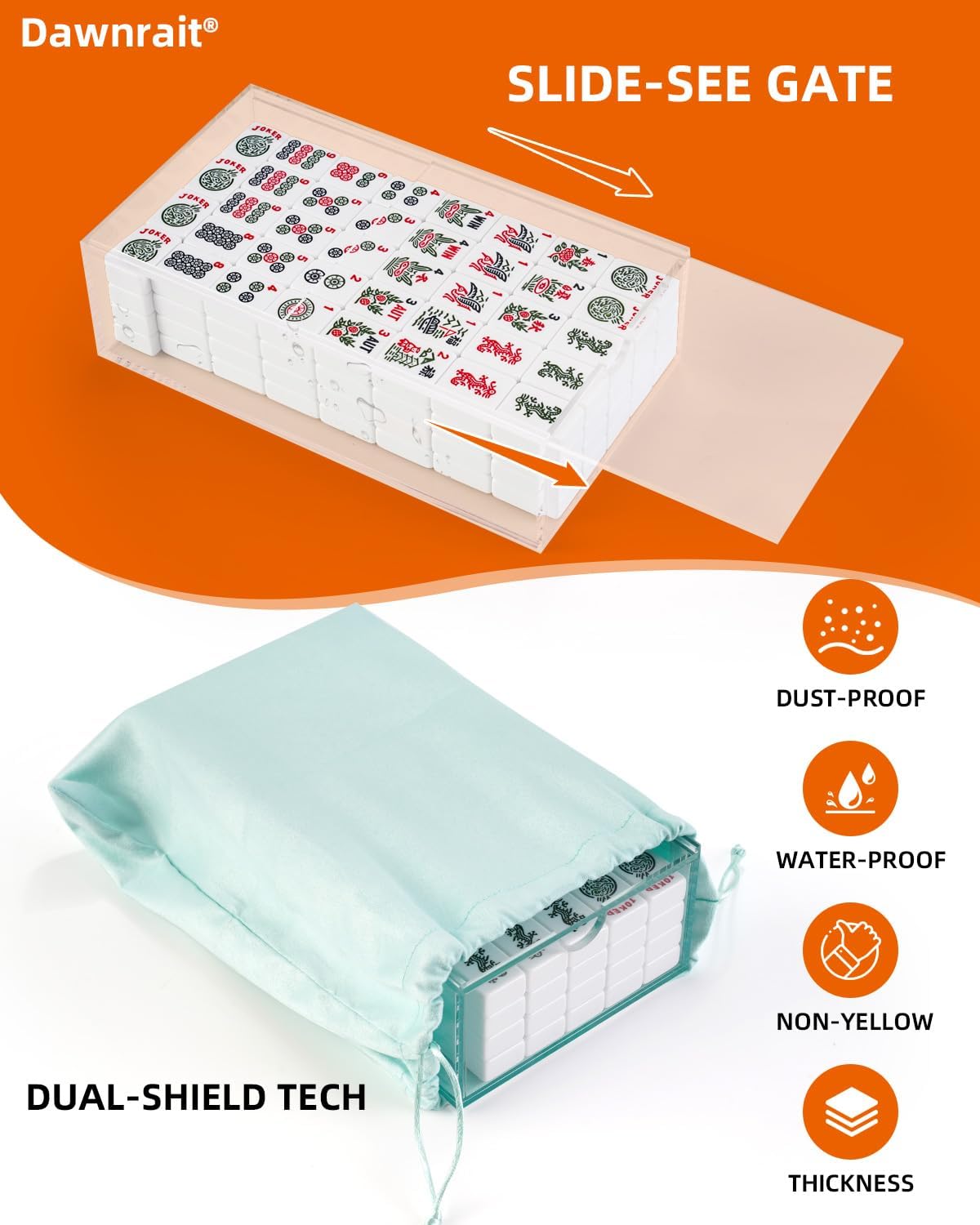 SEE YOUR SET. SAVE YOUR TIME.Game night shouldn’t start with rummaging. Dawnrait Clear Acrylic Mahjong Organizer gives your tiles a calm, display-ready home—so you can choose the right set at a glance, set up faster, and actually play.We designed it for people who play often and care about order: collectors who own multiple sets, club/library regulars who want quick turnaround, and gift-givers who know presentation matters. The result is storage that feels like a small ritual—clean, dry, visible, and always ready.Why We Made This ?Choice without chaos — Transparent walls show which set is inside, no lid-lifting required.Everything has a home — Fixed areas for tiles, league card, chips, and dice reduce “where’s that last piece?” moments.Display that protects — Rigid acrylic helps keep out dust and everyday humidity while looking elegant between games.Gift-worthy, week after week — A tidy upgrade that makes setup and pack-down feel effortless.How It Works ?Assemble in minutes — Ships flat for protection and value; tool-free snap-fit.Peel the protective film — Remove from each panel for crystal clarity.Sort once, enjoy always — Tiles (up to 160 standard 1.2"), the league-size card, chips, and dice each live in dedicated spaces.* Organizer only—tiles, cards, chips, and dice are not included.Designed For:Collectors with 1–3+ sets who want visible, labeled order on a shelf.Club & library players who need faster setup and less table clutter.Hosts & gift-givers who value clean aesthetics and long-term care.Materials & Build:Storage-grade clear acrylic — Rigid feel, neat edges, display-ready clarity.Closed-top layout — Helps keep out dust and everyday moisture; helps deter curious pets compared with soft pouches.Fixed compartments — Predictable homes for tiles, the league card, chips, and dice.What’s Included ?Dawnrait Clear Acrylic Mahjong Organizer (flat-pack)* Not included: Mahjong tiles, league card, chips, and dice.Specs (Check Before You Buy)Capacity: up to 160 tiles (each 1.2" standard size)Dedicated card slot: fits common US league-size mah-jongg cardsAccessory areas: chips + dice (not included)Assembly: ships flat; tool-freeCare: microfiber wipe; avoid abrasives/solvents/heat; store on a level shelfDawnrait is not affiliated with, sponsored by, or endorsed by any league. Compatibility refers to size/fit only.Real-Life Moments:Theme night: See floral vs. vintage backs through the lid—pick the vibe instantly.Club play: Set the box beside the table, tiles sorted, less small-parts anxiety.Between games: A clear, calm display on your bookshelf that makes “let’s play” an easy decision.FAQQ: Will it fit my tiles?A: Capacity is up to 160 tiles at 1.2" standard size. If your tiles are thicker/larger or you carry more than 160, measure before purchase.Q: Is assembly required?A: Yes. It ships flat for protection and value. Assembly is tool-free and takes minutes.Q: Do I need to remove any film?A: Yes—remove the protective film on both sides of each acrylic panel for full clarity.Q: Is it pet-proof?A: The closed design helps deter accidental opening better than soft pouches. For safety, supervise around children and pets.Q: Does it include tiles or accessories?A: No. Organizer only. Tiles, league card, chips, and dice are not included.Q: Can I use it for travel?A: It’s optimized for home storage & display and for moving from shelf to table. For rough transport, consider a dedicated hard travel case.Q: How do I clean it?A: Use a soft microfiber cloth. Avoid abrasives, solvents, and prolonged heat/sun exposure.The Feeling You’re BuyingOrder you can see. A five-minute setup that feels like two. A shelf that looks ready for game night, any night. Choose, grab, play. That’s the Dawnrait way.