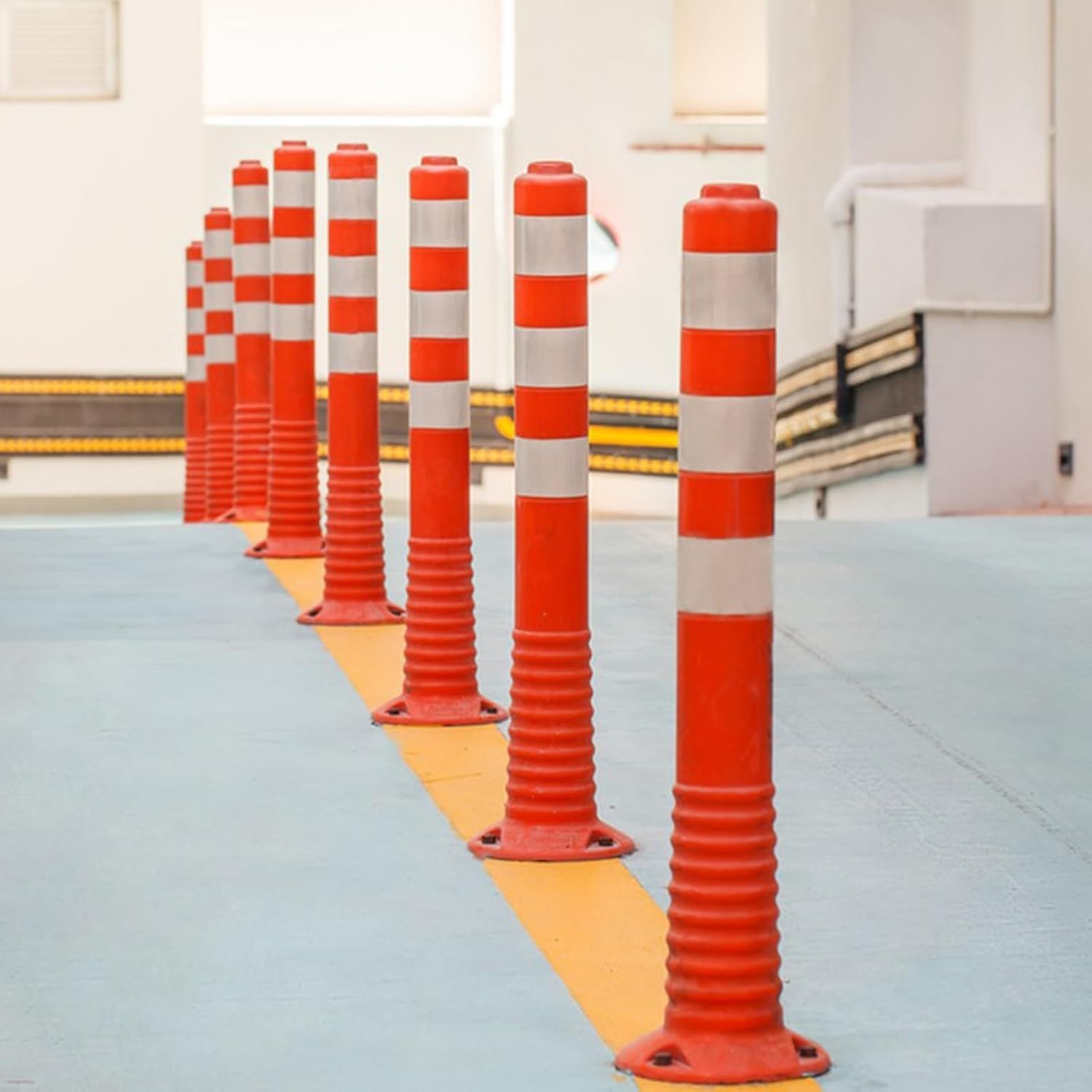 Lockable Parking Safety Barrier:To release pedestrians and equipment from vehicle or forklift collisions. These bright and strong safety bollards are the perfect solution. No one can miss it. Package List:- 4 x Safety Bollards- 12 x Screws Specification:- Material: TPU- Color: Red and Yellow ,Red and White ,Red and Silver- Diameter: 8cm (3 1/8in)- Height: 75cm (29 1/2in) Specification:- The reflective tape enhances visibility.- Easy to install with a full range of accessories.- Can be disassembled and installed at any time.- Great for protecting an area where you don‘t want people to drive or to be cautious.- The plastic bollard has good flexibility and can automatically return to its original shape after being hit. Please Note:- Please allow a slight dimension difference due to different manual measurements.- Due to the light and screen setting difference,the item's color may be slightly different from the pictures. Quality Service:- If you have any issues with our products please feel free to contact us.