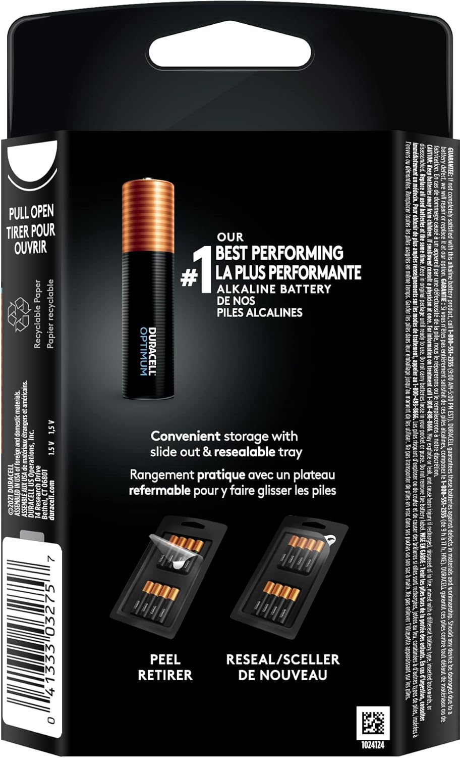 Long-lasting Duracell Optimum AAA ( 1.5 Volts ) alkaline batteries in resealable package for easy, convenient storage ( 8-ct. pack )