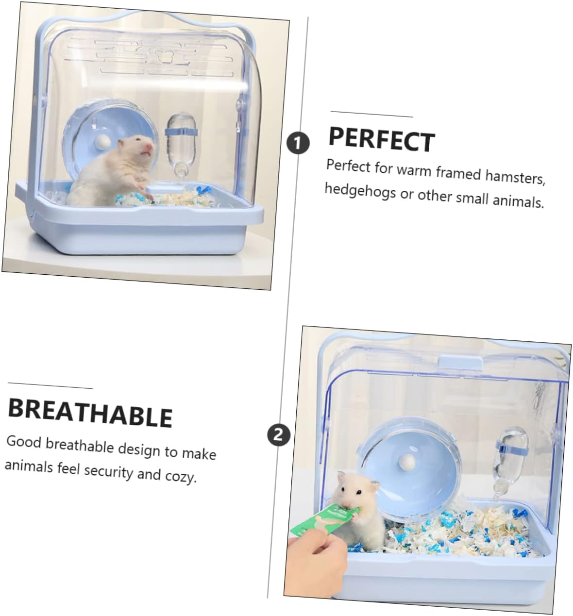Package Include 1 x Hamster Travel Cage Characteristics - Color: Blue Travel Small Pet Cage - Material: Plastic Portable Hamster Travel Case - Size: About 28.00X27.00X20.00cm/11.00X10.61X7.86inch hamster carrying case - Fashion and sturdy, allows pet to bite or scratch freely. Portable, easy to carry plastic pet carrier. - Not only , but also give the pet a fun play spot and hideout portable hamster carrier. - Perfect for warm framed hamsters, hedgehogs or other small animals pet hamster carrier. - Good breathable design to make animals feel security and cozy Outdoor Hamster Carrier. - Made from , no odor, and for use Hamster Travel Carrier.Goods Informationpet hamster carrier That's because our products can meet your needs.Small Pets Carrying Case If you are looking for a professional and hamster cage, then your research is here.pet plastic carrier Using , and .Small Animals Travel Cage It is not easy to deform, which brings you of convenience