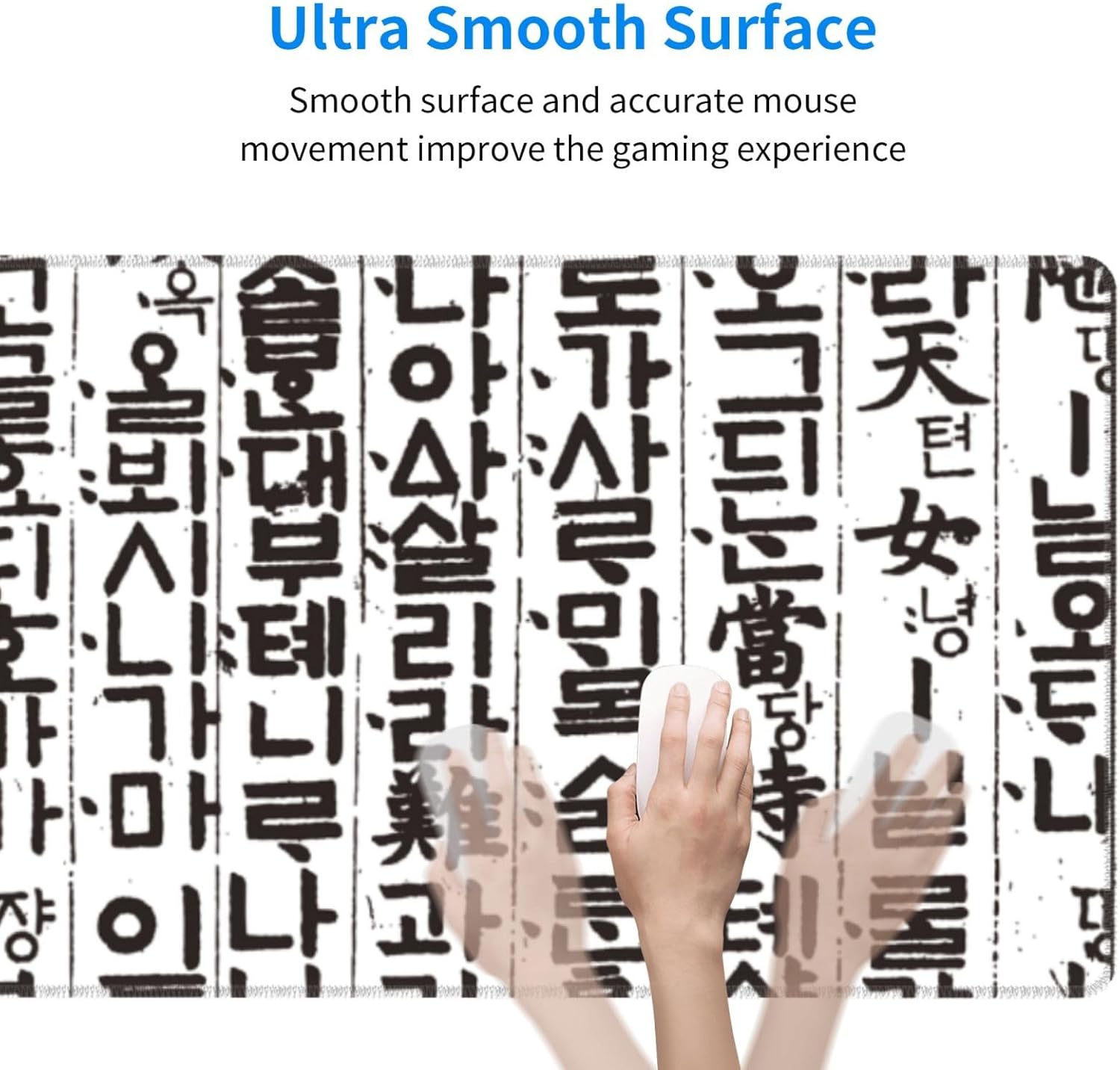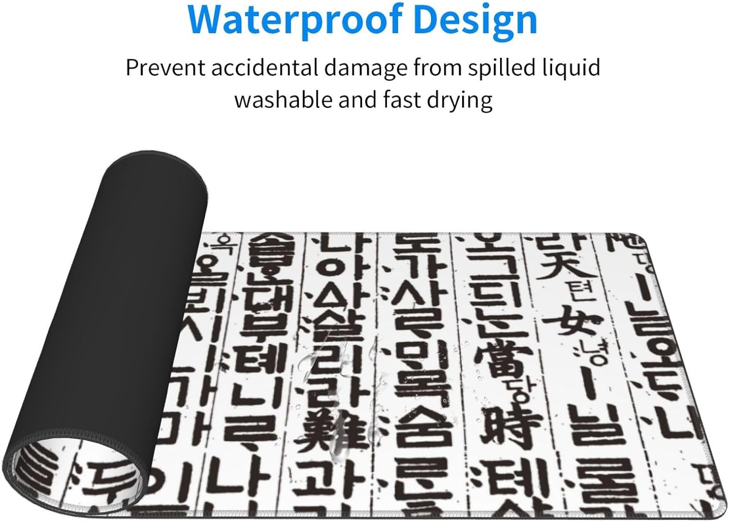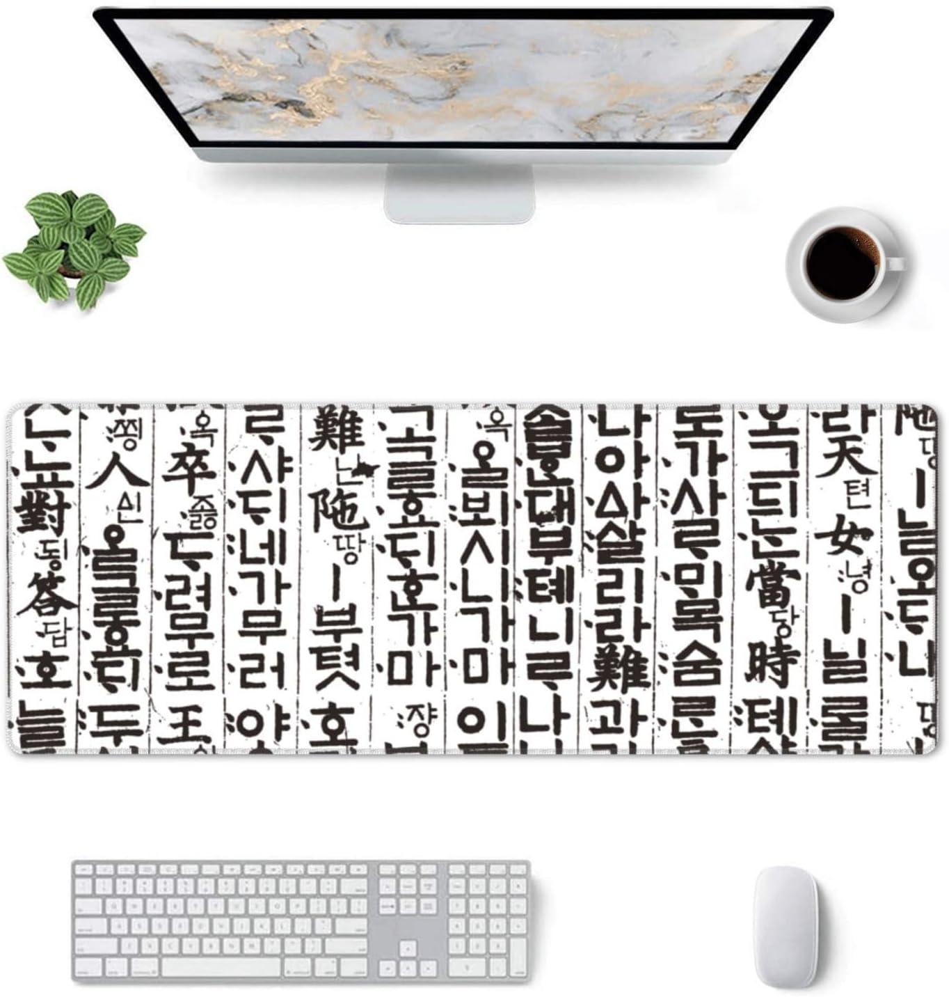Unique Print Desk PadWe only focuses on high quality items. Our exquisite Korean Hangul print desk mat is a good companion to any type of computer, and can be used for anybody, anywhere and anytime. And This super large mouse mat will light up your work space and enhance the performance of your mouse.Why You Choose Us:Ultra Smooth SurfaceOptimized for fast mice movement while maintaining excellent speed and control. Available for all types of mouse.Perfect SizeMeasures 31.5 x 12 inch, big size which is large enough to accommodate laptop, mouse and keyboard, perfect for gaming and work.Anti-slip Rubber BaseAnti-slip natural rubber base can firmly grip the desktop. Premium soft material for your comfort and mouse-control.Durable Stitched EdgesDesigned with delicate edges which can prevent wear. Ensure prolonged use without deformation and degumming.Easy to CleanThe surface is water resistent, liquid stains can be cleaned with water for continuous use. And it will not fade with repeated cleaning.Package Included:1 × Large Mouse Pad100% Satisfaction:An easy replacement or full refund is available for you if you are not happy with our product.Press "ADD TO CART" Now, Add a best value large mouse pads with high quality and start Enjoying Smooth Mouse Movement !