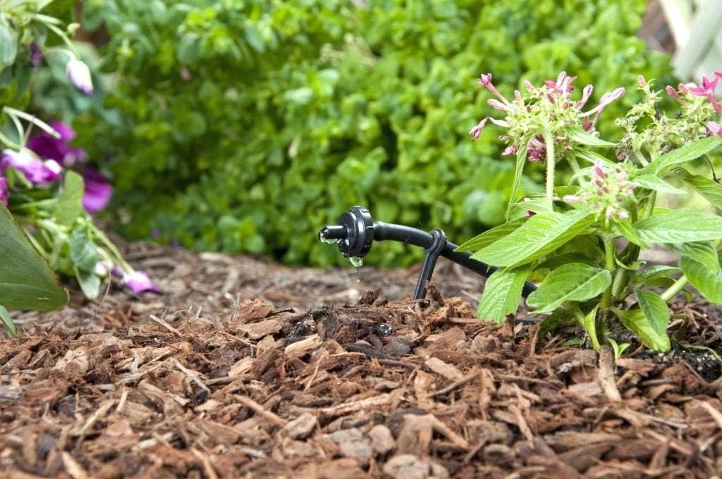 PC Drip Emitters Features The labyrinth water passage with floating silicon diaphragm design provides a self-cleaning mechanism at the water outlet Barbed inlet for installation into drip tubing or 1/4" distribution tubing Male nipple outlet for a placement of multi outlet adapter or bug caps Constructed of UV-resistant, durable plastic material to withstand the most adverse conditions Available in three color-coded flow rates for easy identification Pressure compensation enables the use of longer laterals with smaller diameter tubing. Specifications Flow rates and color codes: 1 GPH (4 L/H) color code – black 2 GPH (8 L/H) color code – green 4 GPH (12 L/H) color code – red Operating pressure: 10-45 PSI (.7-3.5 BAR) Inlet size: 1/4" (4 mm) barb Outlet size: .2" (5 mm) male nipple Materials: Body and cover: High impact ABS Diaphragm: silicone Filter requirement: minimum of 150 mesh Dimensions .95" W x 1" H (24 mm W x 25 mm H)