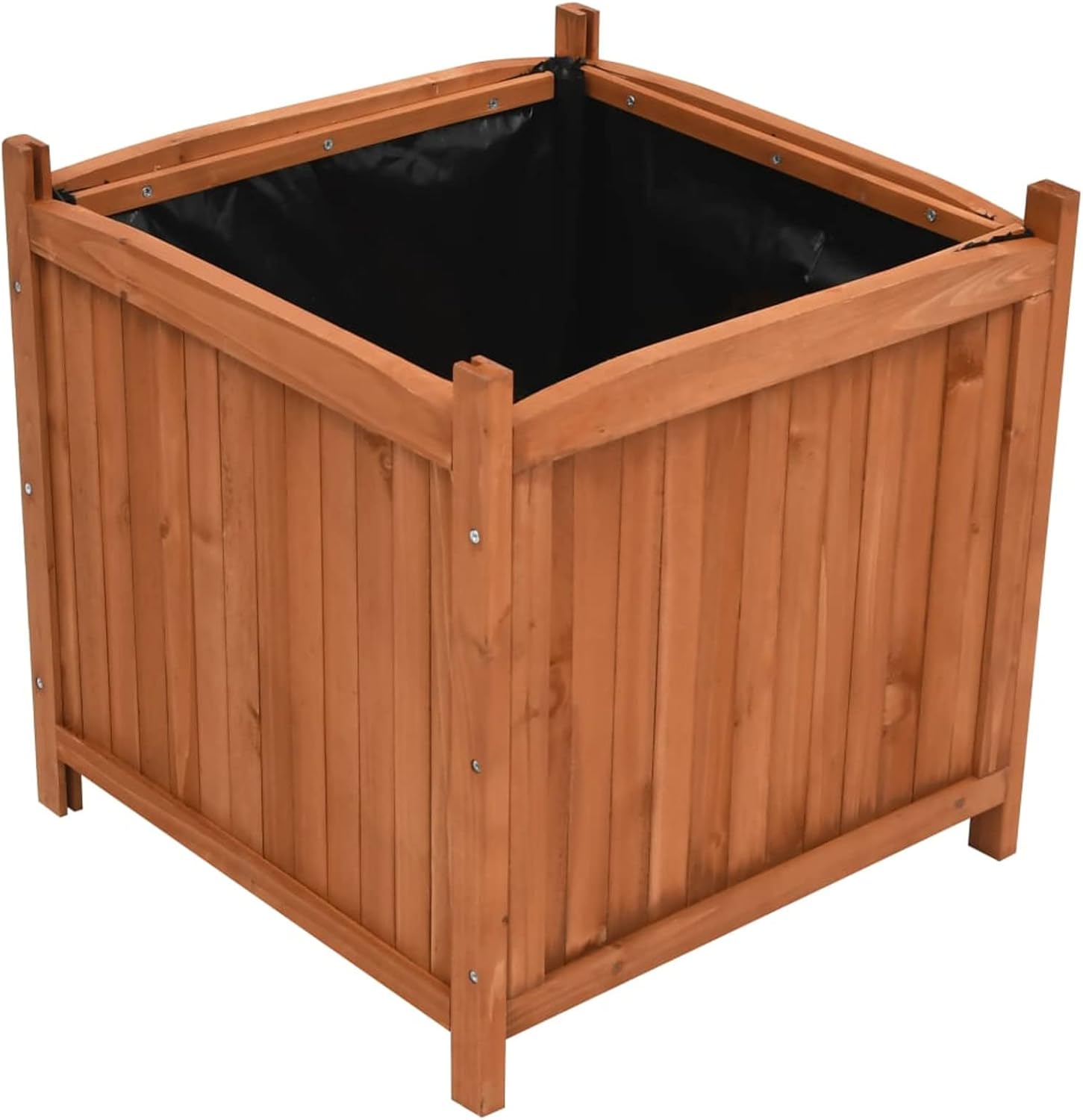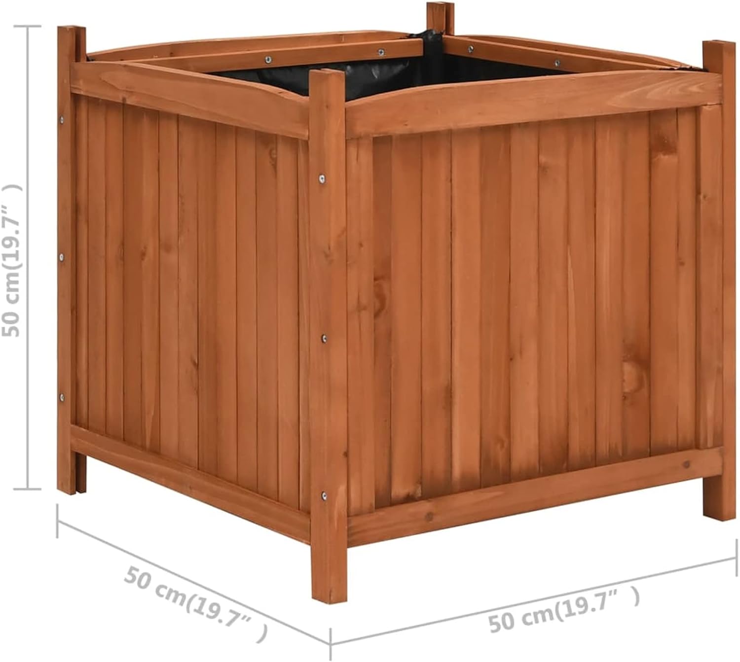 This wooden raised bed set is an eye-catcher in your garden, on your patio or patio. All kinds of plants and flowers can thrive wonderfully here. Made from weather-resistant solid fir wood, these flower boxes are so durable that they can be left outside all year round. The polyester lining keeps potting soil and moisture inside. Material: fir wood with water-based glaze, polyester. Dimensions: 50 x 50 x 50 cm (W x D x H). With round edges. Assembly required: yes. Box contents: 2 x plant pots