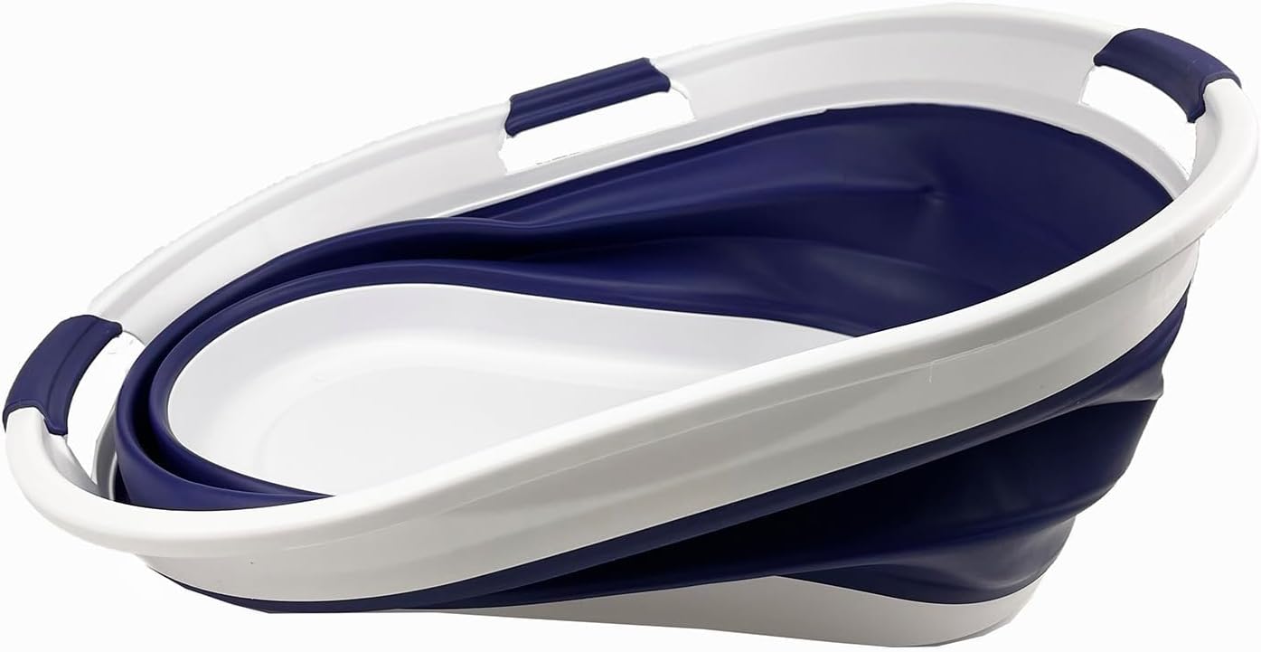 **Collapsible TPE/PP Oval Tub **Brand: SAMMART **Material: TPE & PP **Expanded size: 25.4 x 17.8 x 10.6 (h) inches **Collapsed size: 25.4 x 17.8 x 3 (h) inches