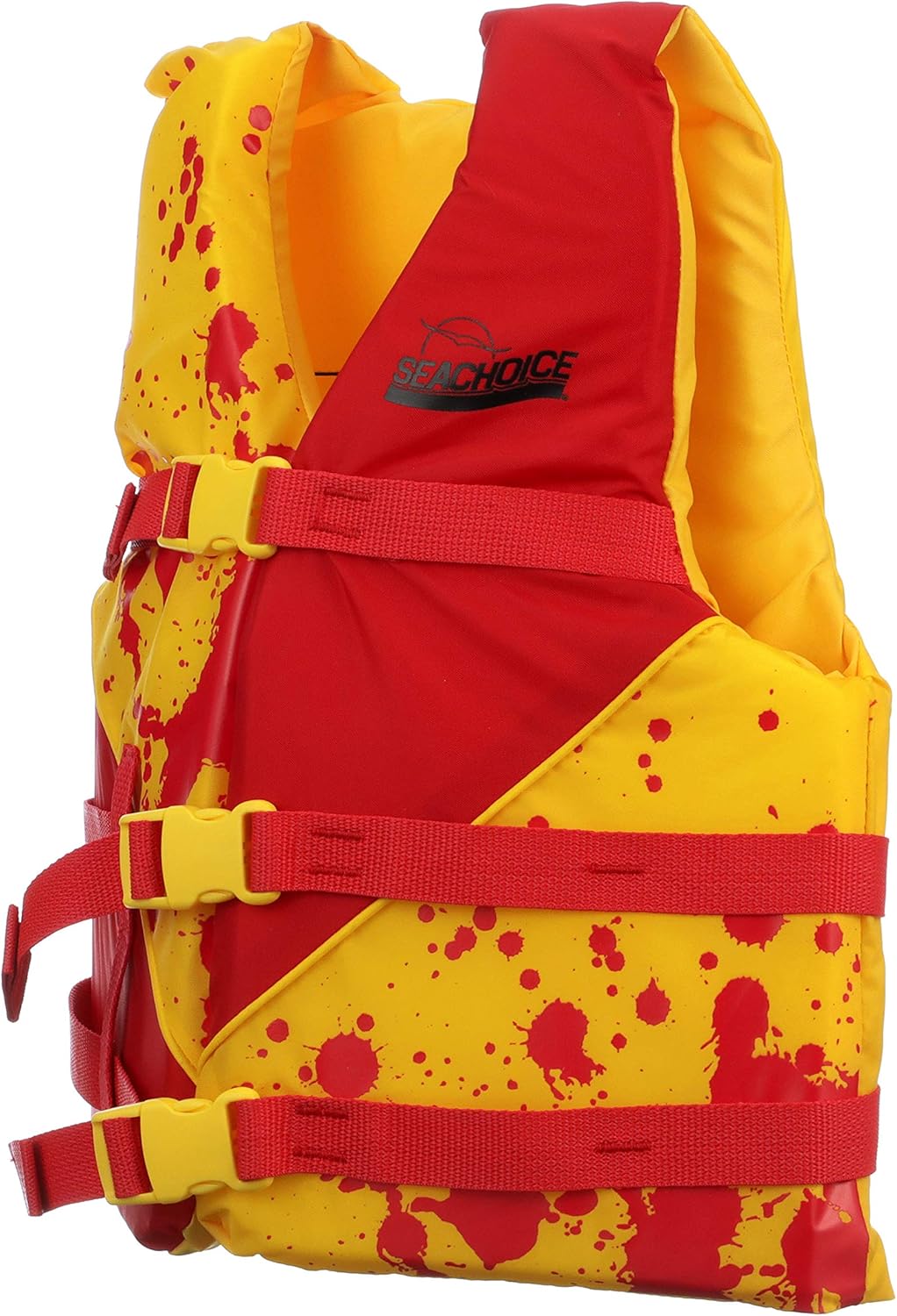 This vest has a 200-denier oxford fabric shell and is lined with foam flotation material. The bright yellow and red shell provides enhanced visibility to help supervising adults keep track of the youngster in this vest. This Type III Deluxe Child Vest has three adjustable belts with buckles in front. This Youth-sized vest is designed for a youngster weighing 50 to 90 pounds, with a chest measuring 24 to 29 inches. Seachoice is committed to delivering quality marine accessories and OEM replacement parts to satisfy fishing, boating and watersports enthusiasts worldwide. Seachoice is run for and by boaters, offering a wide-ranging product line while remaining affordable. Made in the USA.