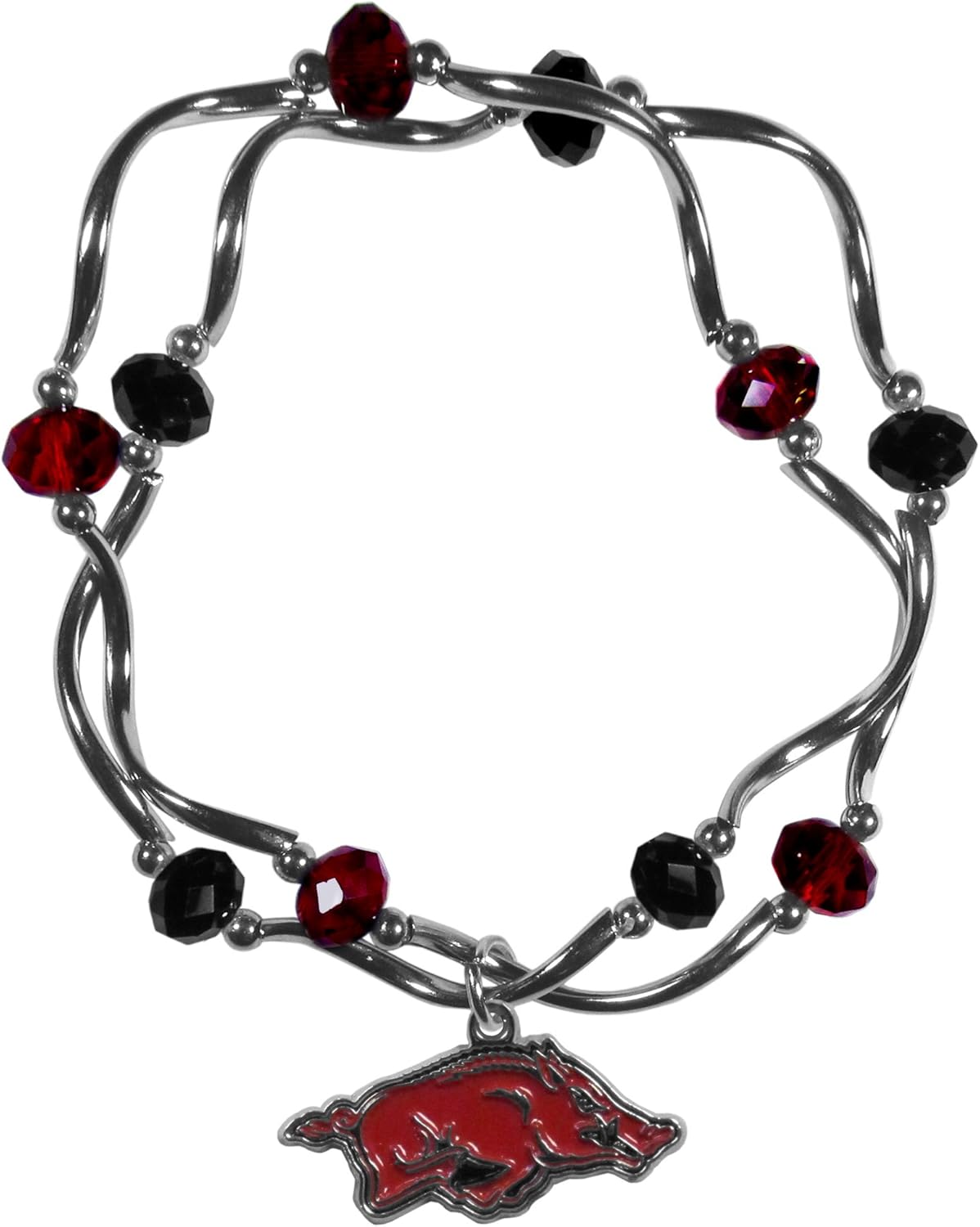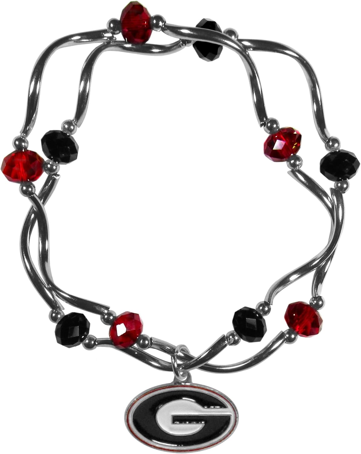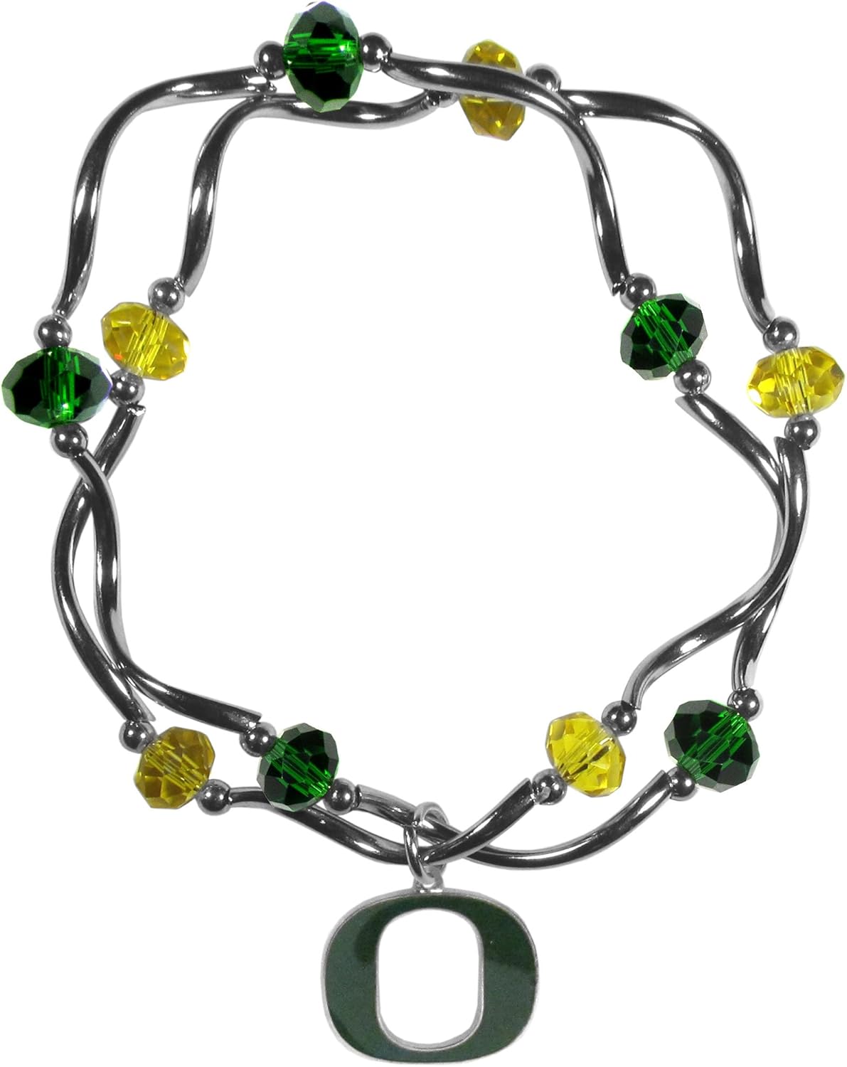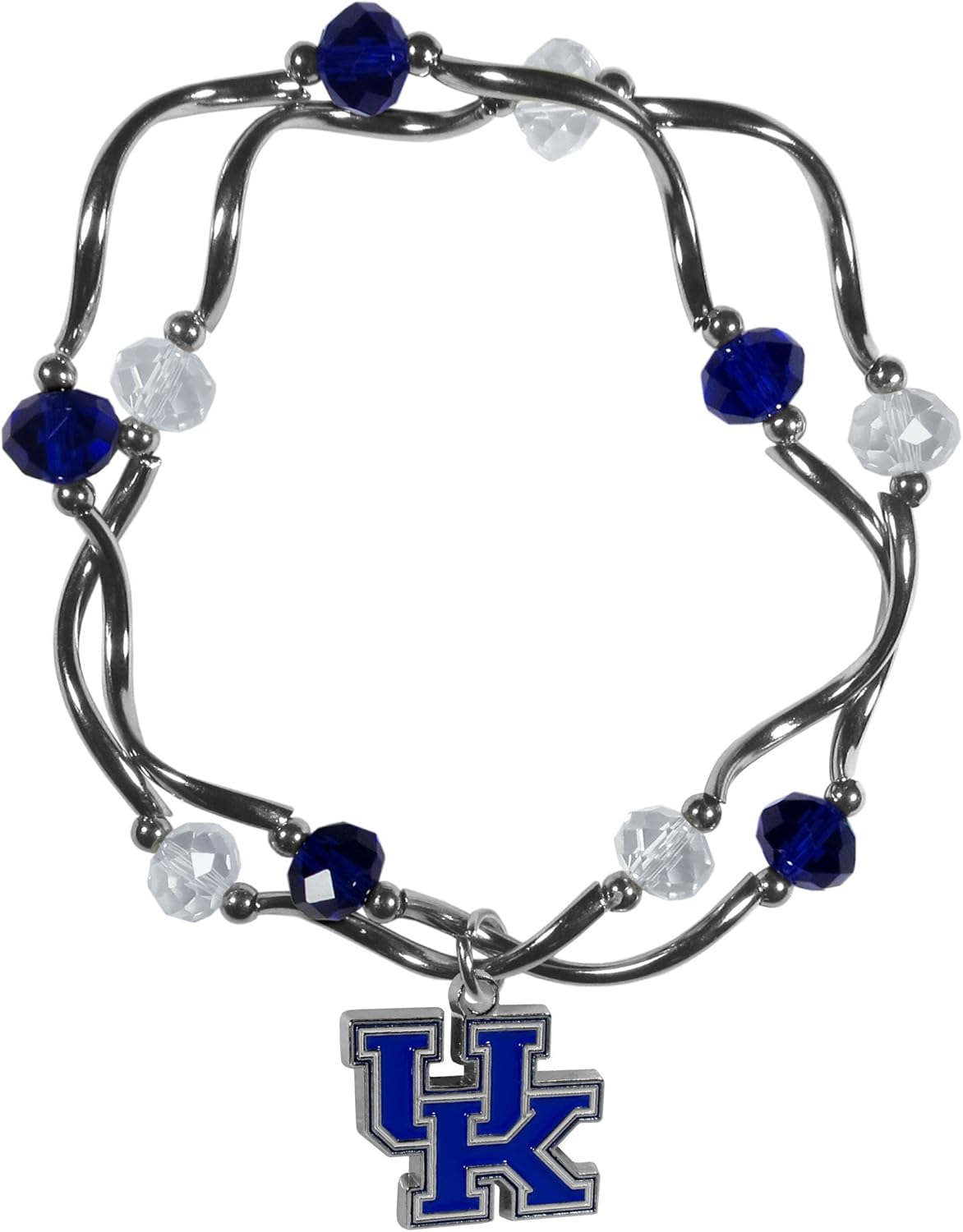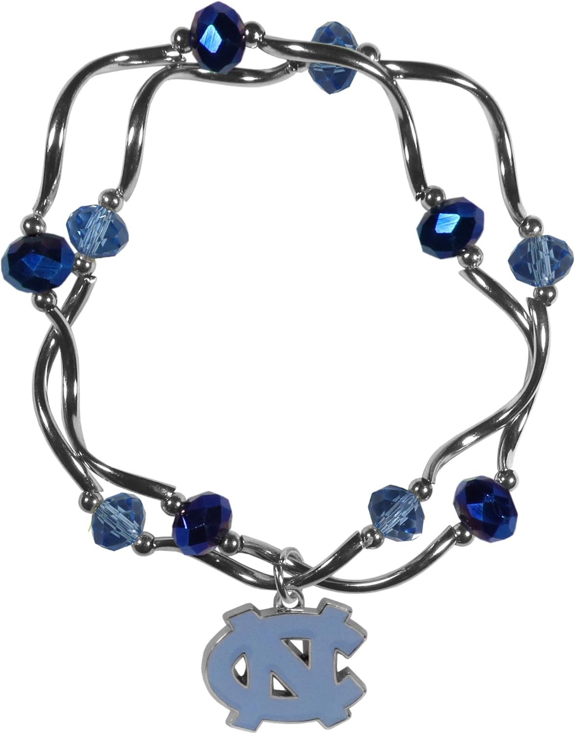 his delicate bead bracelet has eye-catching team colored beads that are strung on 2 Stretch cords that provide a comfortable and easy fit. The crystals are separated by beautiful Helix beads in high polish chrome for a truly designer inspired look. The 2 strands of beads intertwine for a fun and stylish bracelet. This chic accessory is finished off with a Michigan Wolverines team charm that has expertly carved detail and an enameled color finish. A contemporary look to thrill any female sports fan. Whether this a gift for yourself or someone special you cannot miss with this trend-setting fashion bracelet.