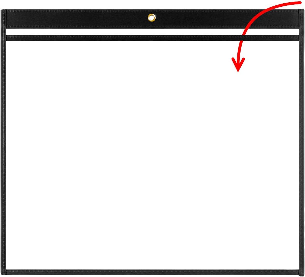 Looking for a colorful alternative to our Non-Adhesive Vinyl Pockets? Our large selection of Rigid Sewn Pockets offers something for everyone! Whether you're in sales, manufacturing, engineering, or business, our rugged pockets give you the power to communicate with ease and efficiency. Use them to pair literature with machinery, display work orders, label shelves, distribute instructions or information to employees, color code work flow, and more. The colored vinyl stitched seams can stand up to heavy use, while the 8-gauge crystal clear vinyl offers maximum visibility both front and back. Work in a messy environment? These pockets can take whatever you can dish out! Product Features: Made of 8-gauge clear rigid vinyl. Open on the long side. Metal eyelet makes it a cinch to hang or tie. Colored vinyl stitched seams stand up to repeated use. Interior capacity 11" x 14". Overall Size: 13 1/4" X 15". Proudly manufactured in the USA. Suggestions for Use: These pockets make wonderful sign holders. Use them to house any documentation where it's crucial that you be able to see both the front and back.