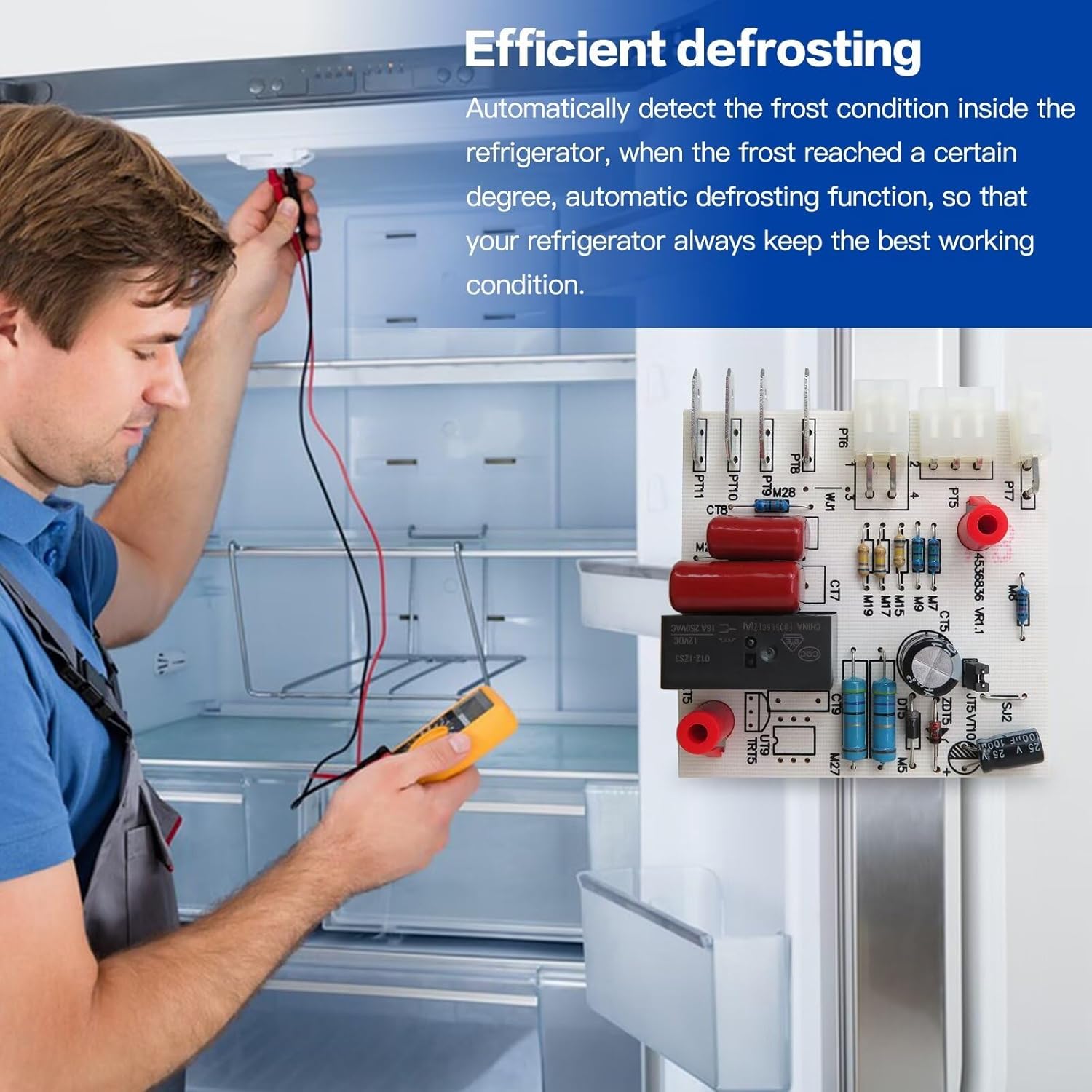 ➤W10366605 Refrigerator Adaptive Defrost Control Board ➤Replaces Part Number:➤ 2213489, 2213490, 2213456, 2213457, 2213476, 2213475, 2252148, 2252150, 2303822, 2304069, 2303837, W10135900, W10135900, W10135053, W10135899, W10135900R, W10351622, W10351625, W10353224, W10351626, W10366604, W10366605, W10366608, AP5326116, AP6020483, PS3504080 and PS11753802. ➤COMPATIBLE BRAND: for Whirlpool Kenmore Kitchen Aid Maytag Amana ➤USAGE: Electronic control board W10366605 manages the functions of the refrigerator such as cooling and defrost times ➤Possible Repair Problems For: Frost buildup, Fridge section is too warm or too cold, Freezer section is too warm or too cold. ➤Package Includes:➤ 1 X Defrost Control Board. ❤➤Best Service:Shopping with MUNTICO, you will no need to worry about the service. All our products Support 30 days for refund and 3 months for replacement satisfaction guarantee warranty. If you got problem with the purchase, just feel free to email us anytime, we are always ready for serve our customers.