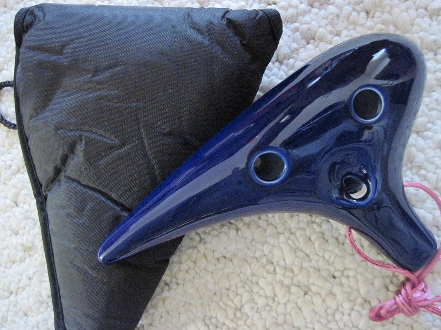 Dark Blue Ceramic Ocarina. Alto C Key Under High temperature controlled Kiln treatment - hardness and endurance guaranteed. Sounding is good - voluminous, mellow, crystal clear and bird chirpy. Size: 6 7/8(Width) * 4(Height) * 2(Length) inch Weight: 10 Ounce